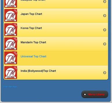 Aplikasi ini menampilkan Top Chart Musik dari beberapa negara, seperti: 1. Indonesia Top Chart 2. Mandarin Top Chart 3. Malaysia Top Chart 4. Bollywood Top Chart Nikmati kemudahan dalam mencari lagu-lagu terbaru. Terima kasih