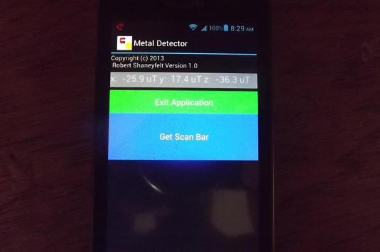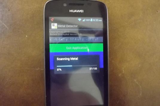 phone. It uses the z axis detector so that the readings come from the back of the phone. It sounds a beep with the frequency of the beep getting faster as metal is close to the sensor.