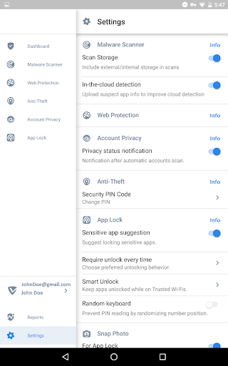 Our on-install scanning and on-demand scanning features will protect your device and data against malicious apps. Scanner is always up to date with the latest intel on viruses and automatically scans apps for malware as you install them.
