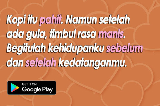 Untuk tau apakah kamu termasuk orang yang bucin baperan atau enggak, langsung aja unduh aplikasi ini karena banyak sekali kata-kata bucin yang bisa bikin suasana hati galau bergejolak hahaha.