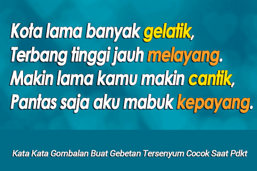 Terdapat gombalan lucu, romantis, maut, pdkt, pantun cinta dan dalam bahasa inggris untuk dipakai menarik hati calon pacar, pasangan atau gebetan kamu. Tinggal dipilih saja karena kebanyakan kata rayuan pada aplikasi ini merupakan kata kata yang sudah kami seleksi sehingga bisa bikin baper.
