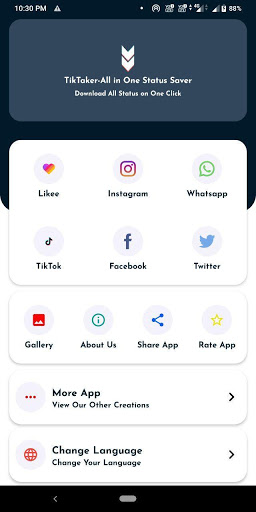 TikTaker-All In One Status Saver is a free app for download Videos and Images from your Whats App, Facebook, Twitter, Instagram and Tik Tok. You can download stories and posts from social media. You can download all medias as easy as 1-2-3. You can Download stories from Instagram Private accounts, and you cand download Tik Tok videos without watermark.