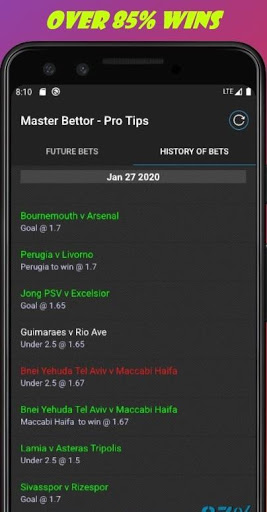 The Matches are carefully analyzed, resulting in 90% wins or more. Master Bettor's betting user interface is pretty easy for any person to use for betting predictions.