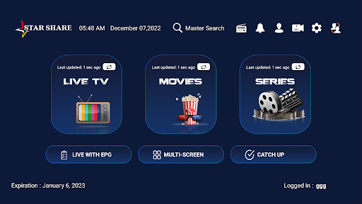 STAR SHARE is a fabulous media player that allows end-users to play their content like Live TV, VOD, Series, and Local audio/Video files supplied by them; on their Android Phones, Android TVs, FireSticks, and other android devices.