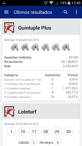 ► Podrás visualizar los últimos 15 sorteos de tu apuesta desde la misma app de Loterias