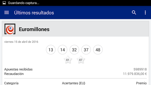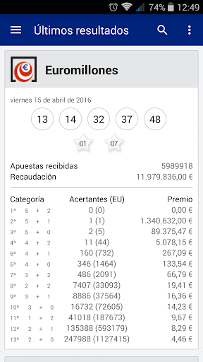 Los sorteos de loterias y apuestas del estado y podrás comprobar son: Euromillones, La Primitiva, Bonoloto, La Quiniela, Loteria Nacional, El Gordo de la Primitiva, etc. También tenemos lector QR Euromillones en versión beta y pedimos vuestra colaboración para identificar cualquier problema que os encontréis en Loterias y Apuestas del Estado, recordad que podéis ayudarnos a mejorar y crecer valorando la app en la Play Store con el sistema de ★ y vuestros comentarios por si encontráis alguna mejora en Loterias.