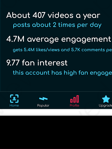 Find the social value of any public TikTok profile - instantly. See engagement metrics, compare accounts, estimate how much money the account is worth. Using 1000’s of data points including views, likes, comments, dislike ratios, fan interest, historical data, etc, compared across a broad spectrum of similar accounts and the community at large, we can estimate fairly accurately how much an account is worth.