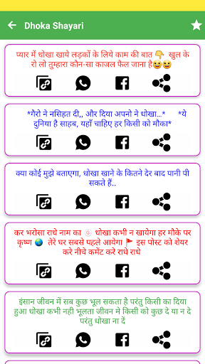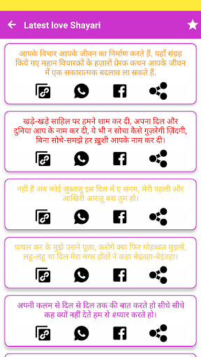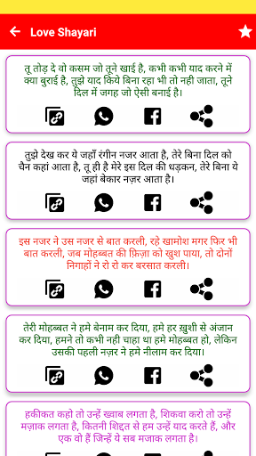 This is one of the nice collection of latest pyar mohaabat ,love shayari app which is totally free and no internet connection required . Love is one of the important part of human life for share there feelings to some we must need a proper text which is attached by our emotion for that this is best and suitable app for you just use and share ultimate feelings .