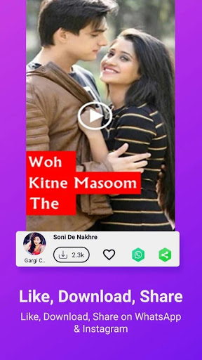 You can enjoy the newest & most trending short videos, create & upload your own videos like e lipsync, funny videos with songs or music. You can share WhatsApp status with each other.