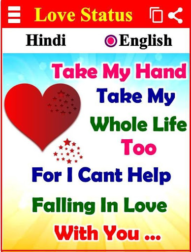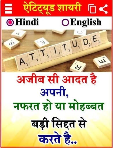 In this app, you will get a big collection of Love Attitude Status in Hindi and English both languages. Here you will get various types of Hindi Status collection which is very interesting for you and your love one. You can use this app online as well as offline also.