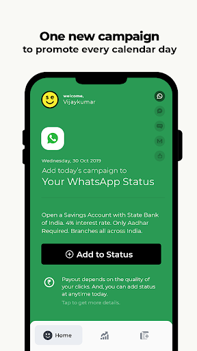 StatusEarn pays you to promote one new advertisement campaign every day through WhatsApp status, Snapchat Story, Email, ..etc.