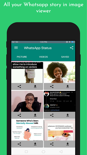 Status Saver is a small size and lightweight application that lets you download photo images, GIF or video stories shared on your Whatsapp Application. The story saver app allows you to share media and repost status.