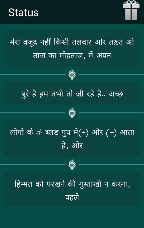 This app is offline so there is no need of internet connection for it and user doesn't need to find on internet because various type of status are provided in it.