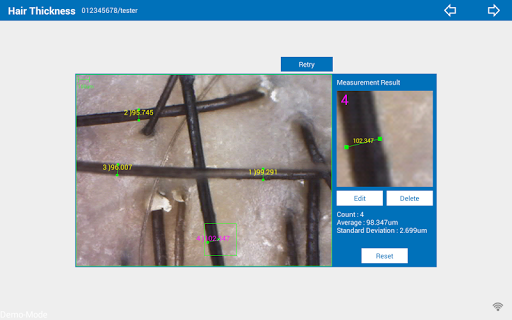 MSS device connect to android tablet through Wi-Fi, and the measurement items are like below.