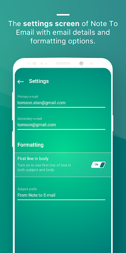 - Two emails: The Note To Email app allows you to send your notes to two emails. For example, to your personal and business inbox.