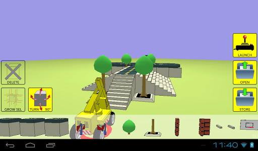 To build up your world, you first select the block you want to add in the library strip at the bottom of the screen. Then you simply need to tap on one of the 6 faces of an existing block that is already in the world. The new block will be attached to the selected face. Once a new block is placed, it will automatically be selected, and you can delete it by tapping the DELETE icon. To select another block, simply tap and hold it.