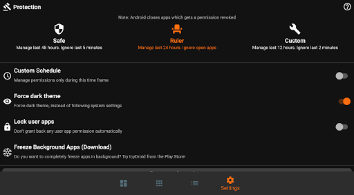 Also, It's highly probable you granted permissions to an app you use a few times a year (like traveling/hotel booking apps). Permission Ruler will not grant permissions back to apps not used recently.
