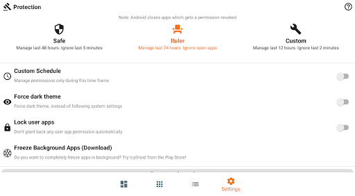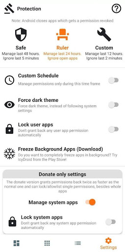 Every time you turn off the screen, Permission Ruler will automatically revoke all permissions from all your apps for you, so you don't have to worry about your privacy or wasting your battery.