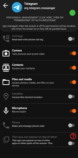 Do you want to stop your apps using dangerous permissions when the screen is off? Did you ever asked yourself if an app can spy on you through your microphone when the device lays on your table? (the answer is no: apps cannot spy on you that easily, unless they are real malwares, but they can access your files, or get your location, etc.)