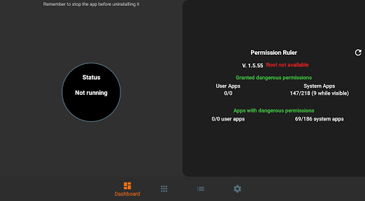 When you turn off your screen, Permission Ruler will revoke all permissions from all apps (unless they are ignored). When you turn on the screen, it will grant all permissions back (unless they are locked).