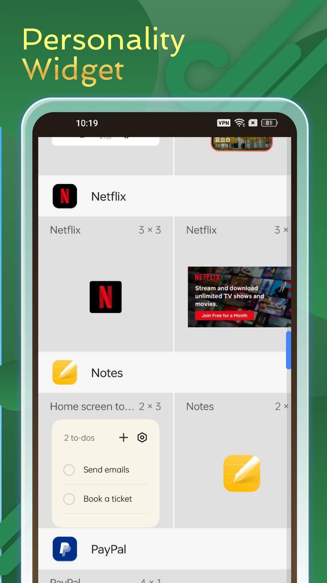 Long press on the home screen to add useful widgets and shortcuts, simplifying your android phone.