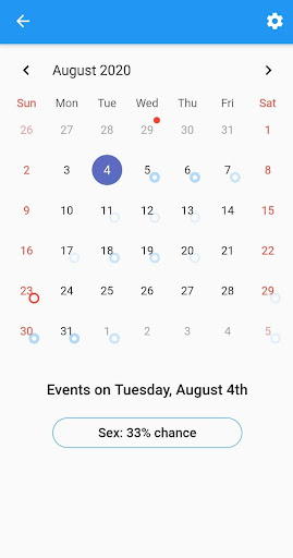 Use the simple interface to input and track key events. The app then uses Machine Learning to predict the most likely dates for sex, allowing you to work your thing or simply chill out.