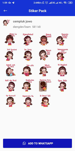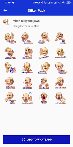 1001 sticker jawa lucu - WaStickerApp funny sebuah aplikasi stiker terbaru, yang di dalamnya terdapat banyak kumpulan sticker lucu dan mengelitik yang menggunakan logat bahasa jawa. Aplikasi ini dibuat untuk memudahkan anda untuk menambahkan stiker di dalam wa. Buat chattingan whatsapp mu menarik dengan menambahakan sticker jawa ini ke aplikasi whatsappmu,