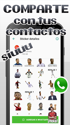 ⚽️Te permite descargar los stickers de cr7 en packs de 30 de forma instantánea.