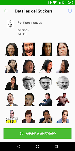 WhatsApp用ペルーステッカーは、Peruvian環境の最も重要な顔をwhatsappメッセージで使用するアプリケーションです。ミーム、政治的、コリウッドのキャラクチャティラシ。