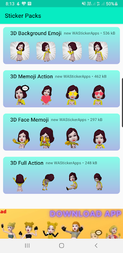 A different way to share your feelings via new stickers for whatsapp - 3d emoji girl stickers to your family and friends using this app.