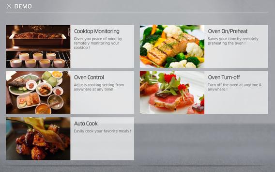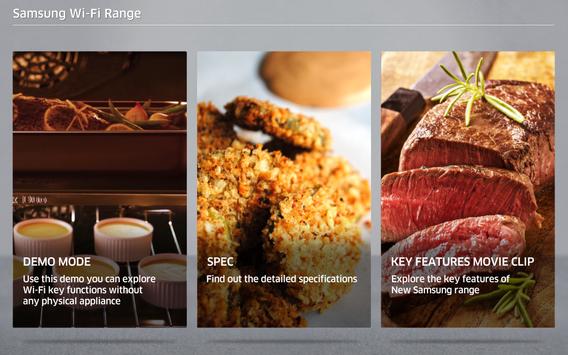 Using this Demo App, users can explore Samsung Range's new Wi-Fi functions without any physical appliances. There are 3 sections in this App: First section is Demo Mode which is the main feature of this App to show the 5 major functions of Wi-Fi. The activated buttons will be flickered to let the users know the sequences and if users touch the activated buttons, the videos will be played accordingly. Second is Spec and this page is directly connected to Samsung.com/us homepage to show the specifications of Samsung ranges. The last section is Key feature movie clip and there are 3 kinds of short feature videos regarding the new Samsung range.