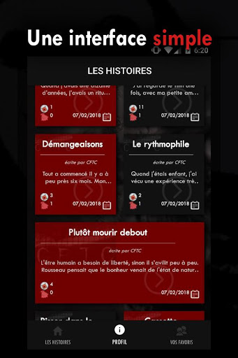 Retrouvez vos creepypastas, légendes urbaines et histoires d’horreur préférées en français et découvrez celle de la communauté… mais restez sur vos gardes… car vous pourriez vous faire surprendre à n’importe quel moment...
