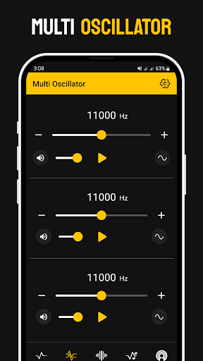 You can adjust the sound generating frequency easily by dragging the yellow dot clockwise or anticlockwise. Additionally, control the volume of the generated sounds from 0-100%.