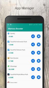 Memory Booster-Ram Cleaner provides you app manager through which you can share and delete application,It also tells you how much memory it takes in your storage.
