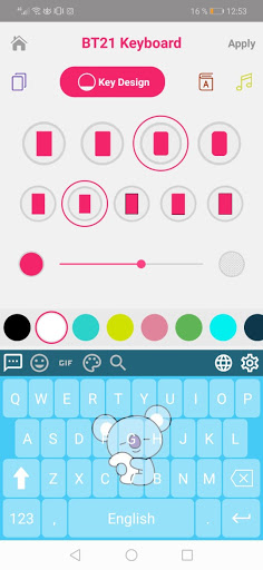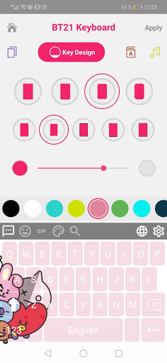 • Click the APPLY button or the preview picture of BT21 Theme Keyboard;