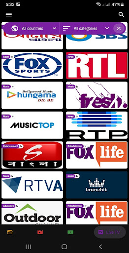 News TV channels, Kids TV channels, Sport TV channels, Movies TV channels, Animals TV channels, Music TV channels and many more.