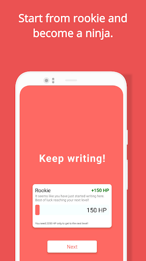 Start as a rookie writer and become a ninja. As you write daily in our app, you will gain more HP. Reach higher levels to unlock writing challenges and word prompts.