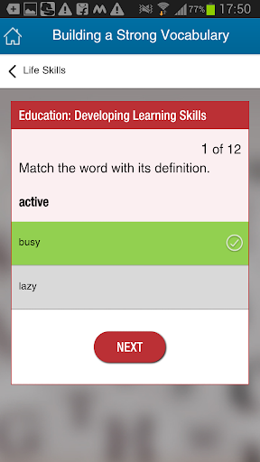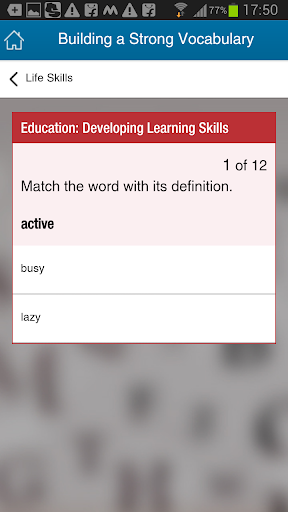 Practice matching words with their definitions and improve your vocabulary. Building a Strong Vocabulary is a 3-book series from New Readers Press. This app will help you learn new words from the books.