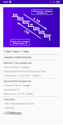 تم تجهيز هذا التطبيق أيضًا بملالية يمكن أن يسهل عليك حساب طول وحدة العملية الرياضية ، في شكل الإضافة والطرح والضرب وتقسيم الوحدة مثل Km Mm وما إلى ذلك .