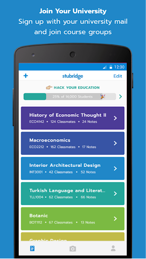 Sign up with your university mail address, choose your courses and start to see, talk and share notes with your classmates.
