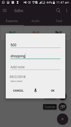 app will help student to manage there expenses in free of cost. App provides google speech facility to add expense list.
