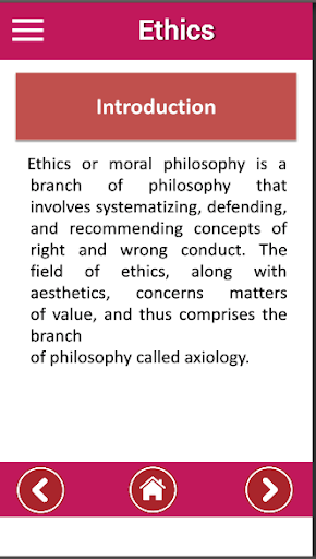 Ethics an educational app for the students who are interested to learn about the ethics subject.