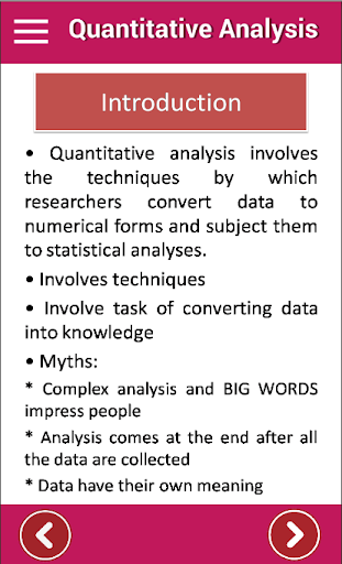 Quantitative analysis app is simple offline guide for the students who are learning this quantitative analysis subject in their study and also for all students of mba, bba and computer science and business finance students and for every one.