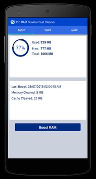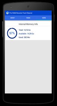 Pro RAM Booster Fast Cleaner is a new and free tool that allows you to boost your phone, clean your device RAM memory, free more RAM space to perform other application well and also make a thorough cleaning to your phone with only one touch!