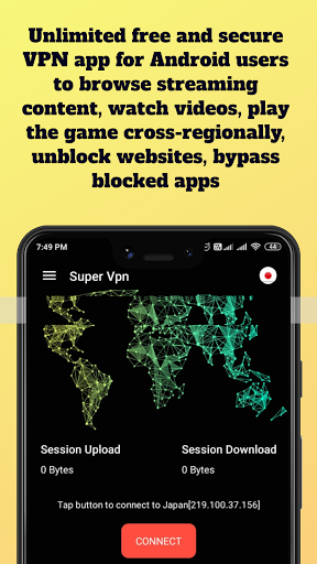 Super Vpn is a unlimited VPN App, 100% free. Yoy can use for Play games, online streaming videos, bypass blocked and unblock - apps, websites. No registration required. offered by StudioPlayStar