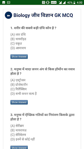 जीव विज्ञान सामान्य ज्ञान and MCQ
