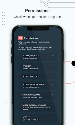 Also this app will help your find for any unsafe permission or any risky permission that may be threat to your data & security according to Google protection levels.