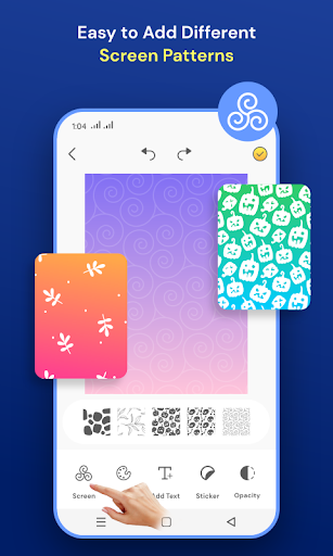 You can customize the wallpaper with various options such as paint, text, stickers on solid color background wallpaper, gradient color background wallpaper or pattern wallpaper.