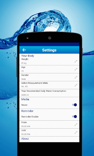 Watch on screen the quantity of water which you drink in a day and next day will start the new reminder from zero ML. Rewards section will show your rewards on consuming the water according to ML.