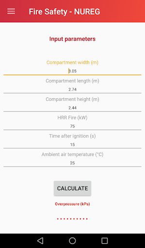 This application allows to calculate simple fire characteristics. The different calculation sheets are based on the NUREG (USA) fire calculation sheets available on https://www.nrc.gov/reading-rm/doc-collections/nuregs/staff/sr1805/s1/